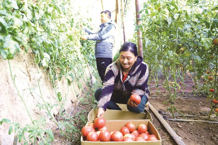 平泉市认真实施乡村振兴战略,通过产业结构调整,大力发展食用菌、设施菜、林果种植产业,促进农民致富增收。图为1月10日平泉镇农民在温室棚内采摘西红柿。李平文 摄