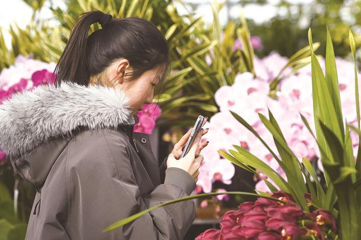 寒冬时节,室外寒风凛冽,广平县南阳堡镇后南阳堡村智能温室大棚内却暖意融融、花香四溢。上百个品种的花卉在恒温环境中竞相吐艳,这背后,离不开当地气象部门精准高效的防寒保障服务,为花卉产业筑牢越冬“防护盾”。图为顾客在欣赏花卉。通讯员 程学虎 纪飞 摄
