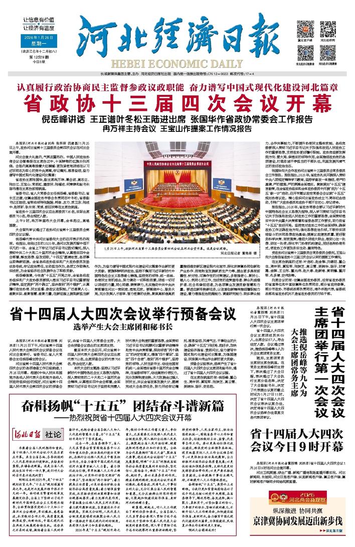 本报讯(河北日报记者霍相博 刘冰洋)1月25日下午,省十四届人大四次会议主席团举行第一次会议。