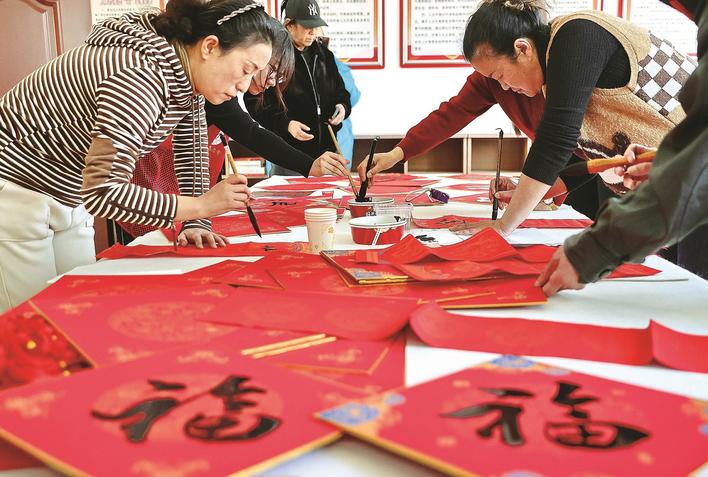 1月19日,秦皇岛市海港区河东街道工人北里社区组织开展“书法惠民 年味浓浓”活动。活动现场,社区书法爱好者、社区志愿者齐聚一堂,为社区居民、环卫工人等书写春联、福字,送上一份浓浓的新春祝福。曹建雄 摄