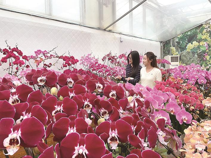 本报讯(通讯员高语婧 刘家璇)随着春节临近,年宵花迎来销售高峰。在廊坊市安次区一家蝴蝶兰种植基地里,不同品种的蝴蝶兰竞相绽放、色彩丰富,工人们忙着组花、打包,一派繁忙景象。这些蝴蝶兰主要通过“订单+零售”线下渠道销往京津冀地区各大花卉市场,也有许多市民前来选购。