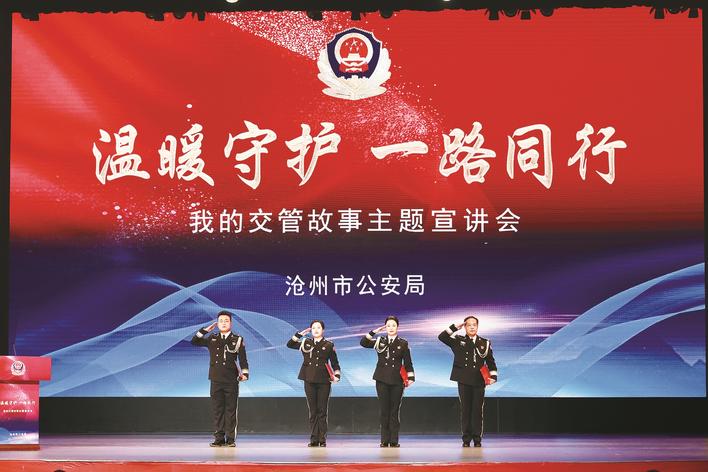 由沧州市公安局主办的“温暖守护 一路同行”暨“我的交管故事”主题宣讲会现场。