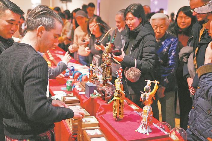 2月8日,在美国纽约举行的“中国味道”春节文化活动上,人们观赏面塑作品。当日,“中国味道”春节文化活动在美国纽约启幕,400余名中外嘉宾齐聚一堂,品尝中国美食,欣赏非遗技艺,迎接农历新年。“中国味道”主题活动还将陆续走进旧金山、波特兰等北美城市。新华社记者 张凤国 摄