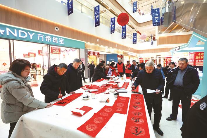 为弘扬中华优秀传统文化,营造欢乐祥和的节日氛围,近日,永清县举办“翰墨飘香”进基层送春联系列活动。图为永清县书法家协会老师在该县明珠广场为群众写春联、福字。庞趁友 摄