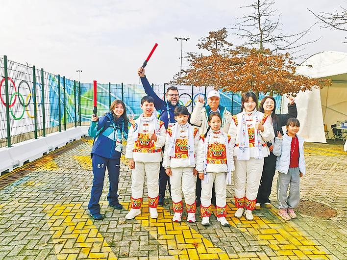 观看速度滑冰男子5000米比赛时,孩子们身着虎头服,挥动国旗为中国队呐喊助威,可爱的模样吸引了众多外国友人目光。大家纷纷与孩子们合影,中国运动员也主动上前与孩子们打招呼,这一幕让他们印象深刻。