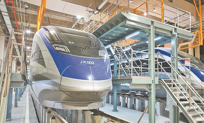 春节临近,京雄快线车辆基地的联合检修库里依然一片忙碌。