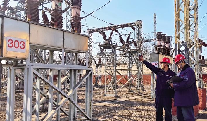 春节期间,开滦股份吕家坨矿留守员工严格依照标准开展设备巡检工作,用责任与担当筑牢安全防线。图为该矿员工在检测高压真空开关导线接头温度。张婧 摄