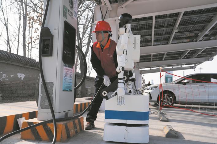 春节假期,新能源汽车出行需求持续攀升。为保障广大车主安心出行、顺畅充电,国网冀北电力提前部署,应用机器人对冀北区域内高速公路、服务区等重点场所充电设施开展全面检测与维护,全力确保节日期间充电桩安全稳定运行。该检测机器人因外形近似人形,并具备环境感知、自主决策与精准执行任务能力,故称为具身机器人。它可以有效替代传统人工对充电桩进行检测、查缺,大幅提升检测运维效能。