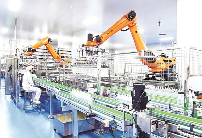 走进石家庄四药集团位于石家庄高新区的输液生产车间,映入记者眼帘的是,员工们身着洁净工装,正在各自的岗位上熟练地操作;一条条自动化输液生产线全速运行,制瓶岗位上的机械臂灵活腾挪、精准抓取,将产品整齐码放至传送带上,快速传递到下一工序……