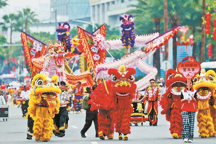 3月1日,广东省肇庆市端州区举行“广府风韵汇星湖 多彩非遗闹元宵”2026肇庆广府文化庙会非遗巡游展演活动。这是南狮表演。元宵节将至,各地举办丰富多彩的活动,喜迎佳节。 新华社发(刘春林摄)