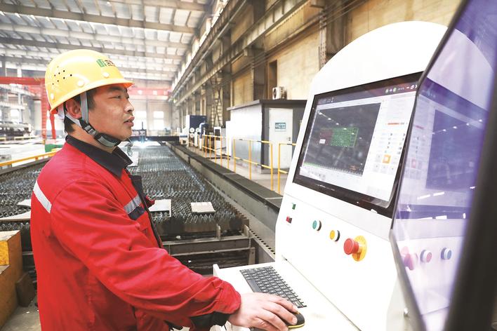 春节假期过后,各地企业纷纷开工生产,开足马力赶订单。图为工人在河北实丰绿建科技发展有限公司生产车间作业。朱大勇 摄