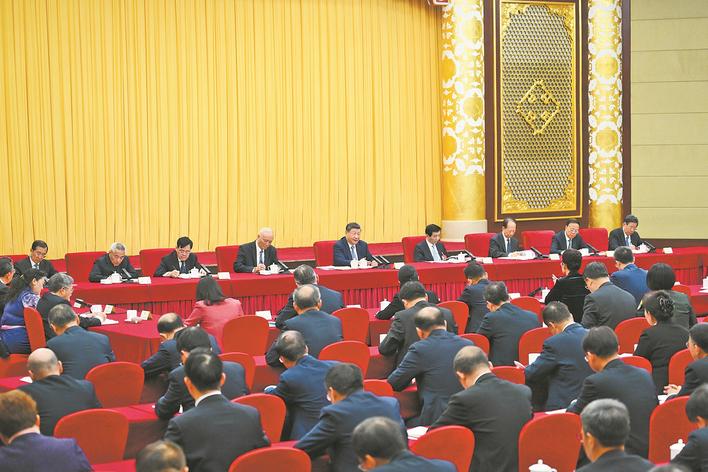 中共中央政治局常委、全国政协主席王沪宁,中共中央政治局常委、中央办公厅主任蔡奇参加看望和讨论。