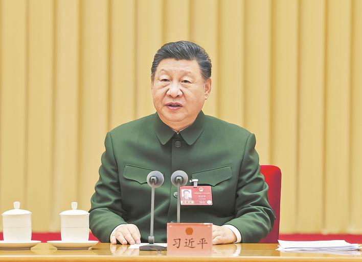 新华社北京3月7日电(记者梅常伟)中共中央总书记、国家主席、中央军委主席习近平7日下午在出席十四届全国人大四次会议解放军和武警部队代表团全体会议时强调,“十五五”时期要如期实现建军一百年奋斗目标、高质量推进国防和军队现代化,必须坚持好、运用好、发展好政治建军这个重要法宝,毫不动摇坚持和加强党对军队绝对领导,充分发挥政治建军特有优势,凝心聚力推动国防和军队现代化行稳致远。