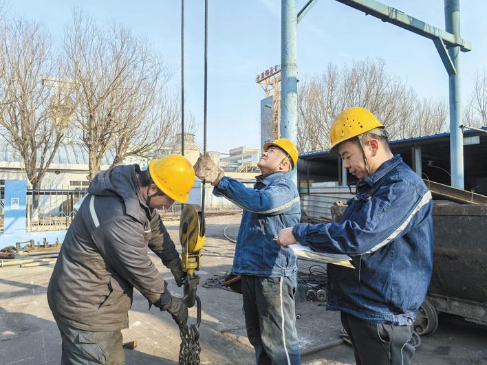 春节假期过后,开滦股份吕家坨矿以全覆盖、严要求、深治理为目标,对人员、设备、工艺等方面进行安全隐患排查,为节后复工复产拧紧“安全阀”。图为该矿机电人员在确认起吊设备完好情况。任蕊 摄