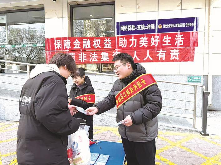 ▶近日,农行迁西支行在营业点开展防范非法集资专项宣传活动,向群众讲解非法集资特征、常见套路与现实危害,守护群众“钱袋子”。任贺旭 摄