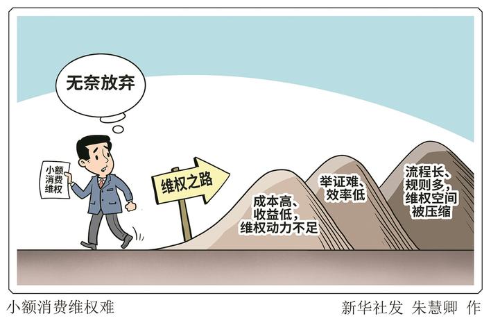 ——成本高、收益低,维权动力不足。“为了几元、几十元的消费纠纷,消费者要花费数百元的打车费、检测费;动辄数千元的诉讼费,更让小额维权望而却步。”中国政法大学副教授、中国消费者协会专家委员会专家朱巍表示,部分商家恰恰拿捏了消费者“不值得较真”的心理,以推诿、拖延的方式抬高维权门槛。