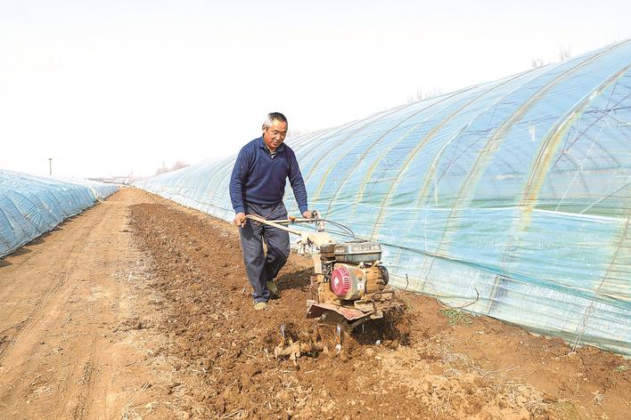 近年来,大厂回族自治县祁各庄镇洼子村大力发展西瓜和蔬菜种植产业,通过推广科学种植技术、优化品种选择,不断提升土地产出效益。随着春耕生产的扎实推进,一幅产业兴旺、村民富裕的美好画卷正徐徐铺展。图为种植户正在旋耕土地。海涛 摄
