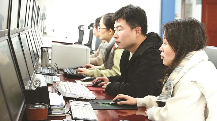 眼下是农业春管关键期,南皮县依托区域气象观测站等立体监测网络,对农田区域关键指标进行不间断监测。同时,组织技术人员深入乡镇田间,开展实地调查,现场指导农户科学春管。图为气象技术人员观察监测数据。赵宇 王建宏 摄
