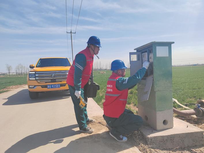 3月18日,赵县供电公司员工到赵县赵州镇对高标准农田机井用电设备进行全面检查,保障春季农业排灌安全用电。高云峰 侯西果 摄