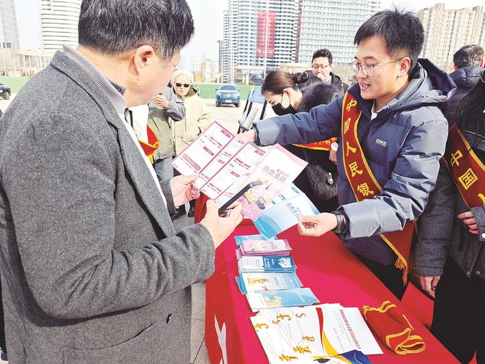 近日,中国人民银行秦皇岛市分行紧扣“青春志愿行 奋进‘十五五’”主题,精心策划并组织开展了一系列形式多样的学雷锋志愿服务活动。图为青年志愿者向市民普及金融知识。王宝坤 摄