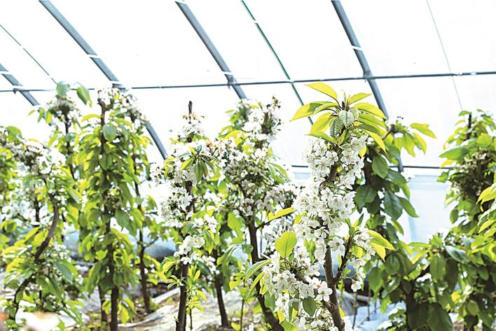 连日来,走进察北管理区哈尔胡洞村的温室大棚,樱桃树、桃树正处于开花坐果期,果枝繁茂、花开满园。