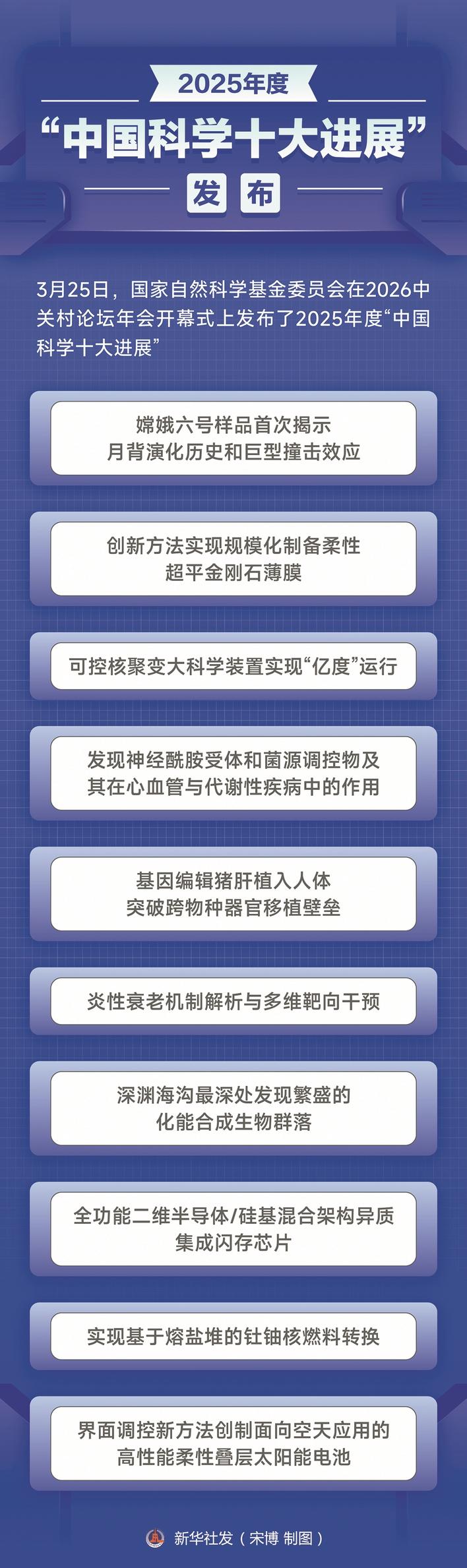 3月25日,国家自然科学基金委员会在2026中关村论坛年会上发布2025年度“中国科学十大进展”,再一次吸引了国际社会的目光,也折射出科技工作者们勇攀科学高峰的昂扬风貌。