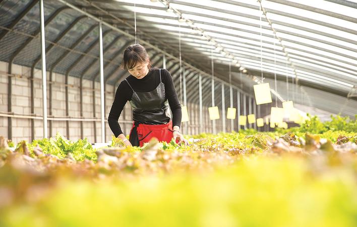 滦南县程庄镇青纱帐蔬菜种植专业合作社的工人在采摘生菜。 通讯员 张浩 赵江涛 摄