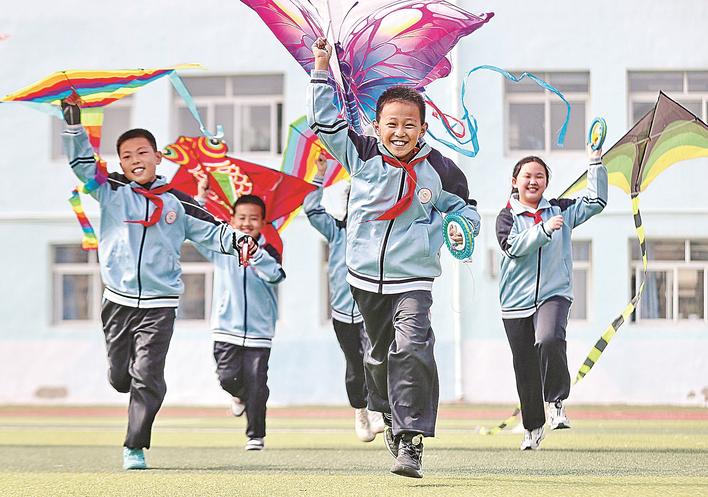 同学们在放风筝。曹建雄 摄