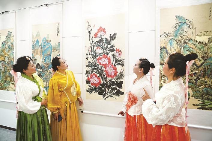 日前,开平区2026年《春山墨镜》春季写意国画展在开平区文化馆举办,吸引了众多市民前来观赏。图为活动现场。 马靖轶 李雪峰 摄
