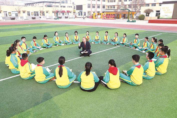 近日,丰润区东实验小学举办读书系列活动,营造书香校园氛围,让孩子们享受阅读的乐趣。图为老师和学生分享阅读感悟。朱大勇 摄