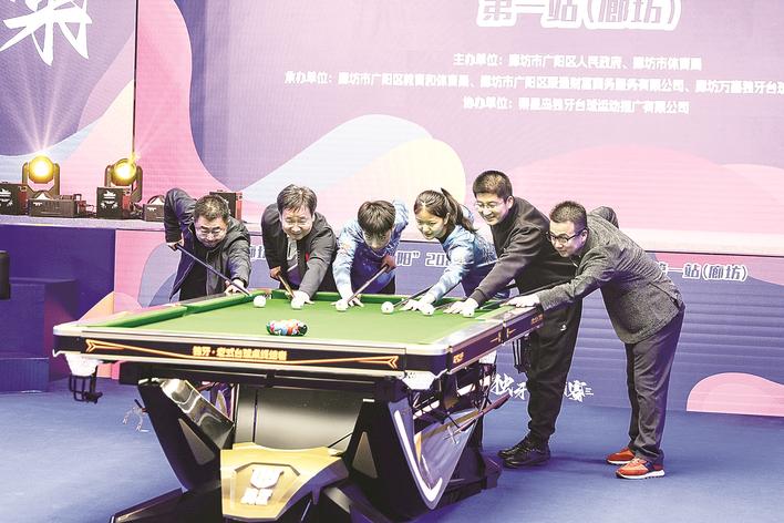 近日,“廊坊银行·梦启航丨在广阳”2026独牙传奇中式九球·鲲联赛第一站(廊坊)开幕式在广阳区举行。鲲联赛是全国首个高奖金中式九球青少年顶级赛事,吸引了国内34个省级行政区以及加拿大的940名少年选手参赛。图为开球仪式现场。张一宁 摄