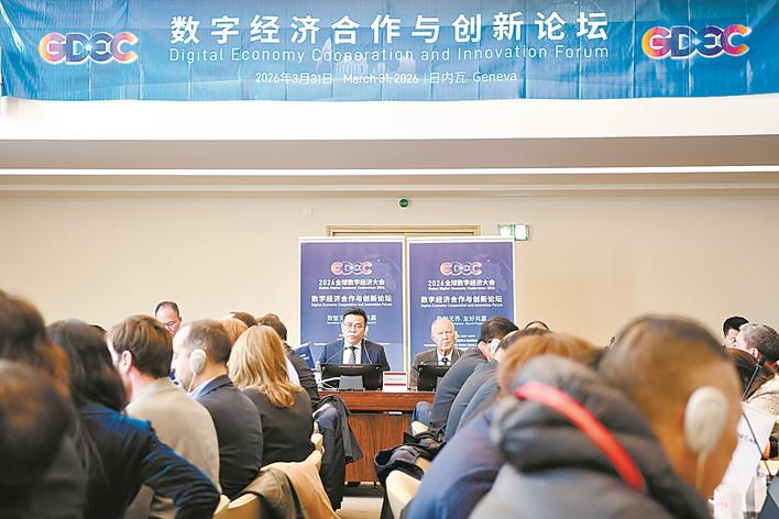 3月31日,在瑞士日内瓦万国宫,人们参加2026全球数字经济大会数字经济合作与创新论坛。 2026全球数字经济大会数字经济合作与创新论坛3月31日在瑞士日内瓦万国宫举办。论坛以“数智无界·友好共赢”为主题,来自全球150余位政商学界及国际组织代表参会,围绕数字经济前沿趋势、国际合作、共赢路径展开深入交流。 新华社记者 连漪 摄