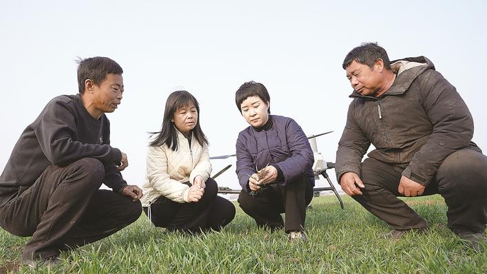 眼下,大地春意正浓。广大农民抢抓农时,投入春管春种等农业生产活动。近日,邢台市平乡县农业农村局开展“科技兴农、人才强农”春管春种保春耕活动。该局组织农技推广人员深入田间地头、蔬菜大棚为当地农民提供农业技术服务,确保春耕生产顺利开展。图为平乡县农业农村局农技推广人员张静思(右二)在史二疃村麦田向种粮大户传授小麦“科技壮苗”管理技术。 记者 刘杨 通讯员 范钦龙 摄