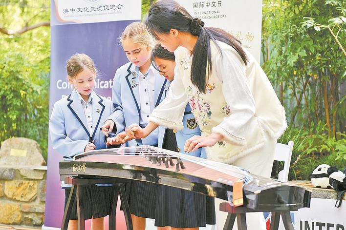 4月2日,在澳大利亚阿德莱德动物园举办的“国际中文日”活动中,来自当地学校的学生体验古筝弹奏。 2026年“国际中文日”活动——“熊猫馆中华文化体验”2日在澳大利亚阿德莱德动物园举行。来自当地学校的近百名师生、中文推广志愿者及社区代表齐聚一堂,通过丰富多彩的互动体验,感受中华语言与文化的独特魅力。新华社发