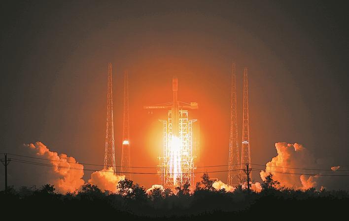 4月7日21时32分,长征八号运载火箭在海南商业航天发射场以“一箭十八星”方式,将千帆星座第7批组网卫星送入预定轨道,发射任务获得圆满成功。新华社发(刘建秋 摄)