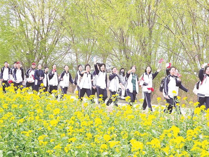 4月3日,河北衡水中学举行第29届远足活动。全校高一年级师生共同完成了80华里的徒步挑战,将思政课堂搬出校园、融入自然天地。据悉,此次远足活动以“踏青砺志赓续血脉 跃马奋进勇踏征程”为主题,是学校开展社会实践的重要组成部分。图为学生们在远足途中。 记者 胡竞文 摄