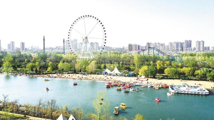 清明假期,不少市民游客在邢台七里河风景区骑行赏景、亲水游玩,沉浸式享受轻松惬意的假期时光。图为游客在七里河国家级水利风景区亲水游玩。记者 刘俐验 通讯员 李成行 摄