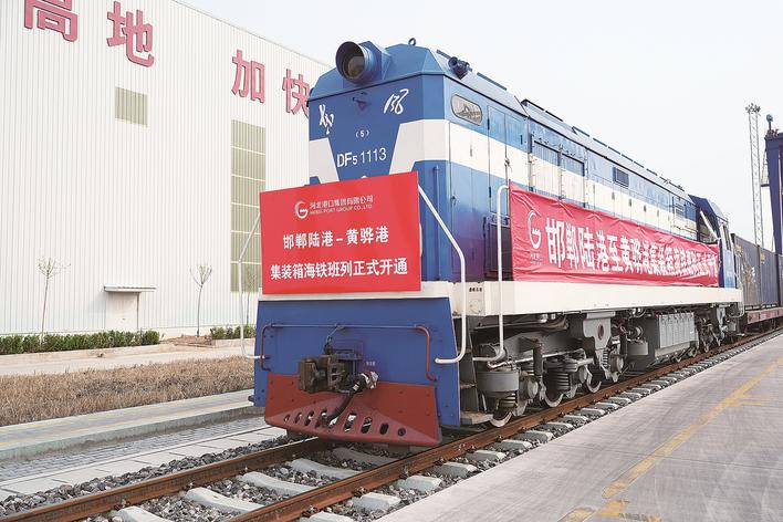 近日,邯郸至黄骅港首趟铁海联运班列顺利开行,为邯郸及周边地区钢铁、装备制造等企业搭建起一条高效、优质、稳定的出海通道,同时将国外进口的金属矿石运至邯郸地区供应企业生产,实现邯郸与黄骅港间“重去重回”双向运行。 图为邯郸至黄骅港首趟铁海联运班列。崔上 付秀智 摄