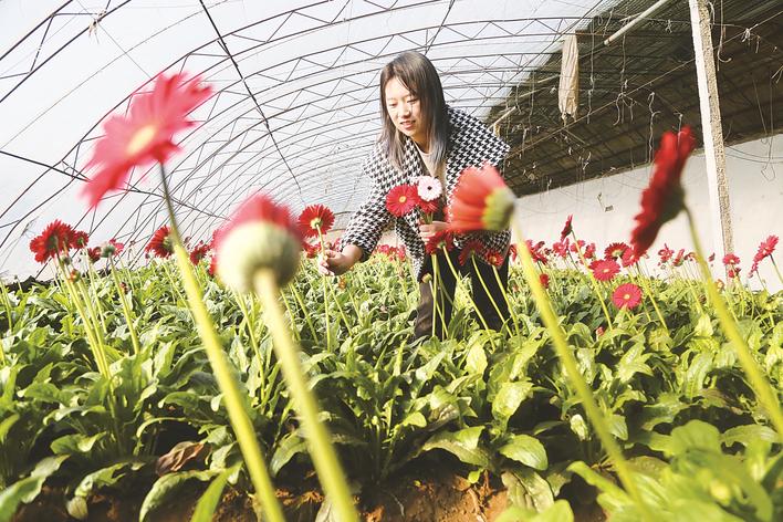 日前,走进迁安市金斗农业园区花卉暖棚,仿佛踏入了一片五彩斑斓的花海。一株株非洲菊竞相绽放,红的似火、黄的如金、粉的若霞,工人们正忙着采摘、分拣、包装,一束束鲜切花即将运往京津等地市场,一派红火忙碌的景象。