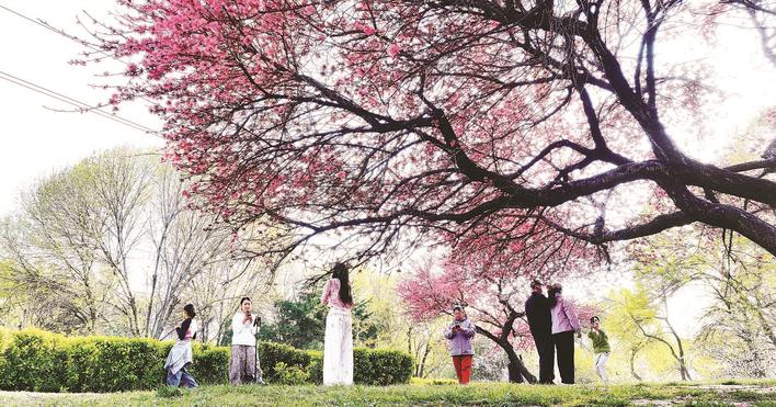 游客在太平河畔游览拍照。 本报讯(记者张超 通讯员李一凡)在石家庄太平河南岸前进街与柳荫街之间,菊花桃已在春风中悄然绽放,以柔美花姿点亮了2026年的春天。 菊花桃作为蔷薇科桃属的落叶灌木或小乔木,因花朵形态酷似清雅菊花而得名,是观赏桃中极为珍贵的品种。极高的观赏价值让它成为春日里一道不可错过的风景。 每年4月中上旬是菊花桃的最佳赏花期。眼下,太平河畔的这几株菊花桃正在盛花期,满树繁花如云似霞,勾勒出一幅诗意满满的春日画卷。