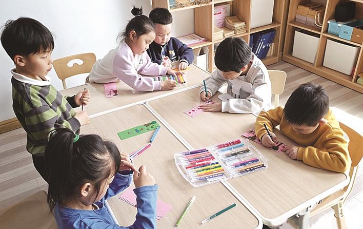 近日,张家口市桥西区西岔社区联合辖区内蓝月幼儿园开展“护苗2026·绿书签行动”主题宣传教育活动,引导幼儿绿色阅读、文明成长。图为孩子们用彩笔、卡纸绘制专属绿书签。申小非 摄