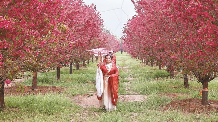 为提升游客的旅游体验,景县推出了七大文旅体验项目,花林摄影区内设有两处打卡背景板,游客可手持道具留下浪漫合影;县旗袍协会成员身着典雅旗袍穿行花海,传统服饰与海棠相映成趣;花林露营基地和汉服体验区更是今年亮点,游客无需自带装备,便可在海棠树下围坐野餐、闲谈小憩,年轻人身着汉服漫步花林,成为流动的风景。运河徒步活动,从小村沿河岸行至华家口,在华家口运河文化展馆设立运河号子传唱点,让游客沉浸式感受运河文化底蕴;海棠花亲子研学活动,让孩子们在花林中探索海棠奥秘、寻找隐藏的文旅优惠券,寓教于乐。
