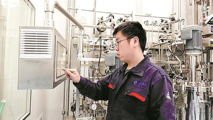 纳科生物发酵技术员王亚南通过显示屏上的参数,观察着他“养殖”的小生命。本报记者 郑建卫 摄