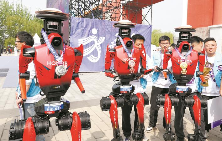 此次比赛中,有一幕令人印象深刻:机器人跑马赛道正好经过南海子公园麋鹿苑,麋鹿悠闲觅食、抬头张望,机器人从一旁奔跑而过,观众则为人类跑者和机器人选手一同加油喝彩。那一刻,人、机、自然和谐共生的画面悄然定格。