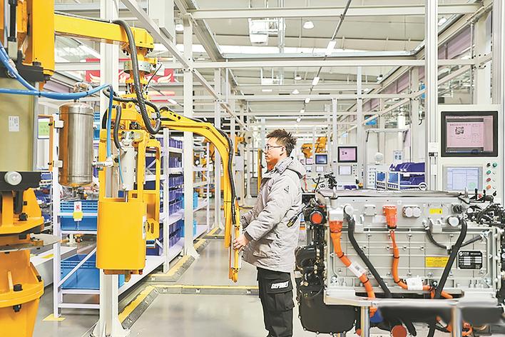 在亿华通张家口生产基地,工人正在操作设备。本报记者 刘朋朋 摄
