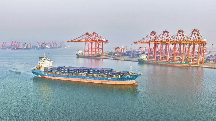 4月17日,一艘轮船驶入唐山港京唐港区准备卸货(无人机照片)。记者从唐山市海洋口岸和港航管理局获悉,今年1至3月份,唐山港全港完成货物吞吐量21548万吨,同比增长3.67%。其中外贸吞吐量9932万吨,同比增长10.27%。