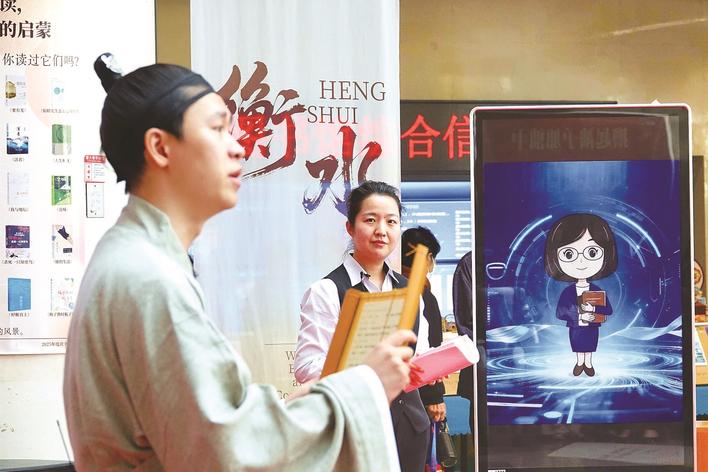 启动仪式现场,衡水市图书馆馆员与衡水学院文学院大学生志愿者带来舞台剧《阅见湖城 对话先贤》,穿越千年致敬衡水大儒文脉;智能机器人与小学生携手诵读国学经典《大学》,实现科技与传统阅读的创新融合,展现阅读新场景。来自乡村阅读推广人、作家、教师、图书馆员、社区、阅读家庭、农家书屋、社会阅读组织、书店等领域的9位代表共同发出全民阅读倡议,号召全社会爱读书、读好书、善读书。